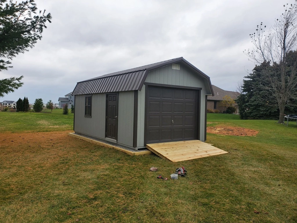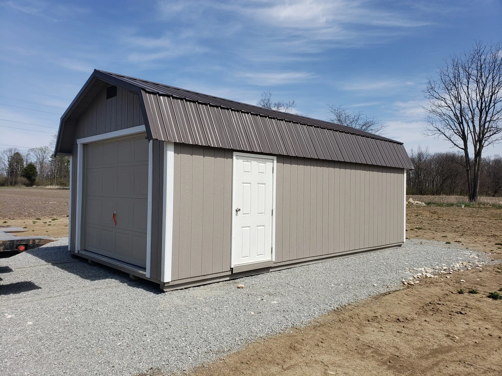 - 1 – Wayne Dalton insulated Garage Door (8’x7 for 10′ Wide Buildings, 9’x7′ for 12′ and 14′ Wide Buildings)