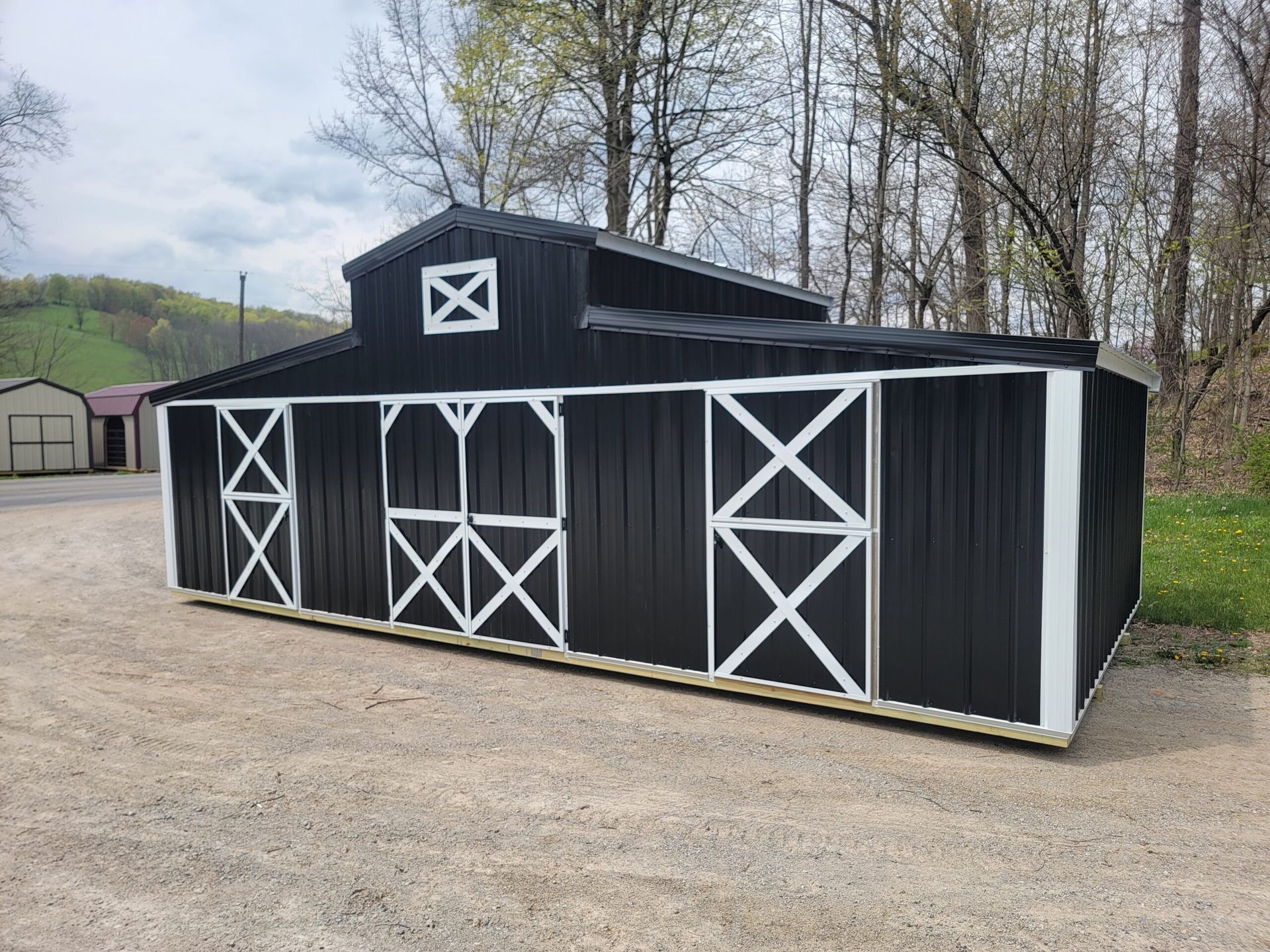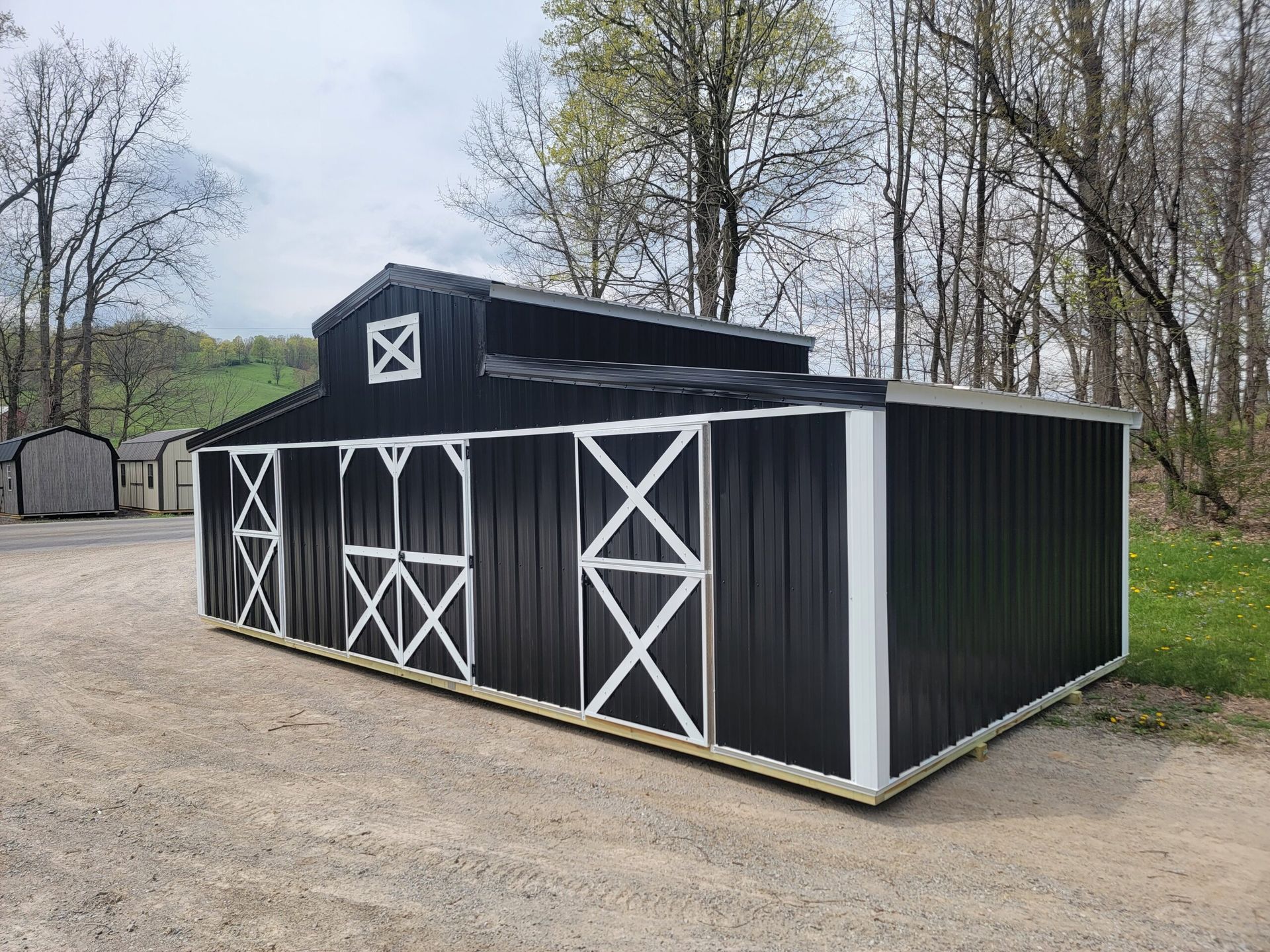 - Up to 20′ Long= 1 Tack Room, 1 Stall